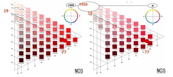 法拉利是举世闻名的赛车和运动跑车的生产厂家,人们谈起法拉利,首先印象非其狂野而独特的红色莫属。如果要在汽车世界中寻找一种颜色来引证一个品牌,那么非红色的法拉利莫属。_具有传奇色彩的“法拉利红”起初是国际汽车联合会在上世纪初期分配给意大利赛车的颜色,作为这些赛车参加大奖赛的专用颜色。之后法拉利一直沿用,也慢慢被人们熟知和喜爱。为了保持其品牌的独特性,法拉利公司请了NCS定制其独一无二的红色。该颜色不在NCS的1950种标准颜色内,而是色相介于Y90R和R、彩度介于75和80、黑度接近20的“NCS 1977-Y95R”。